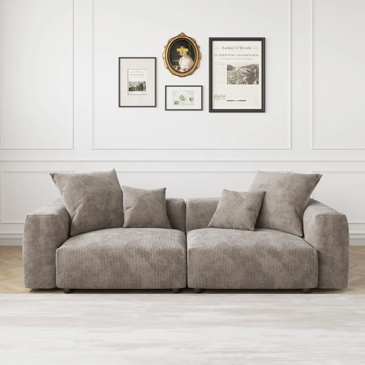Corduroy Upholstered, 2 Seater Modular Sofa