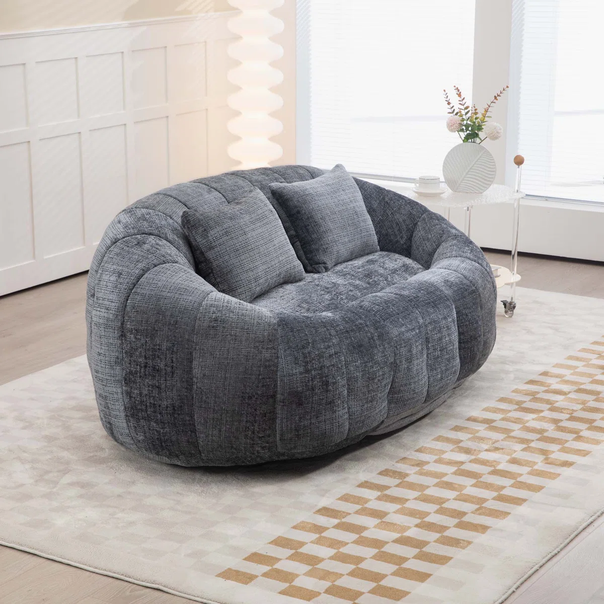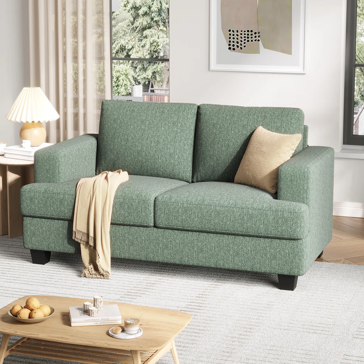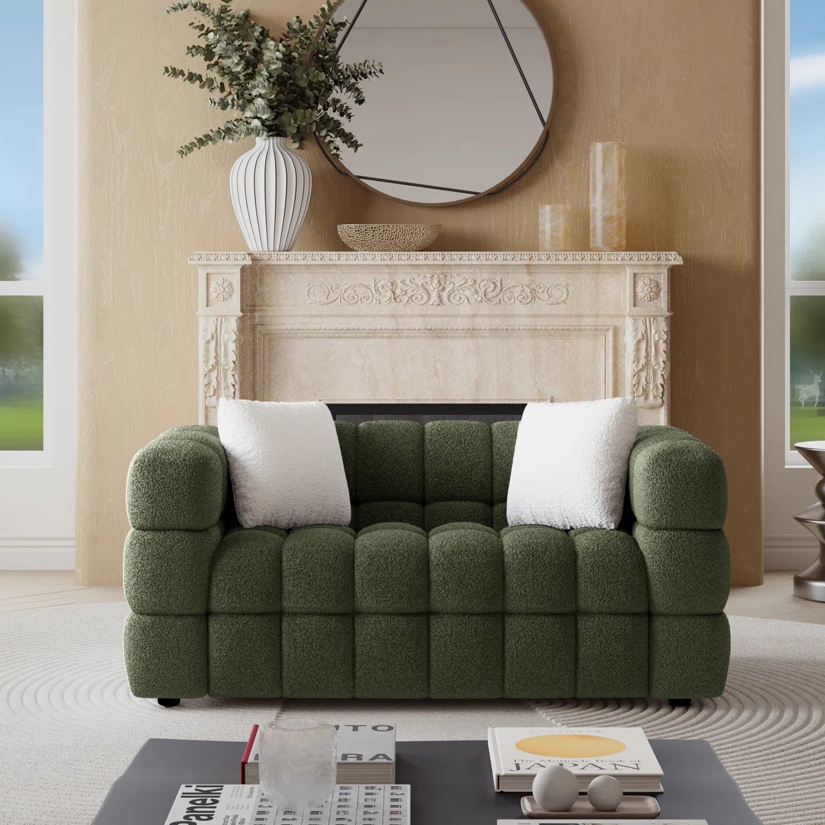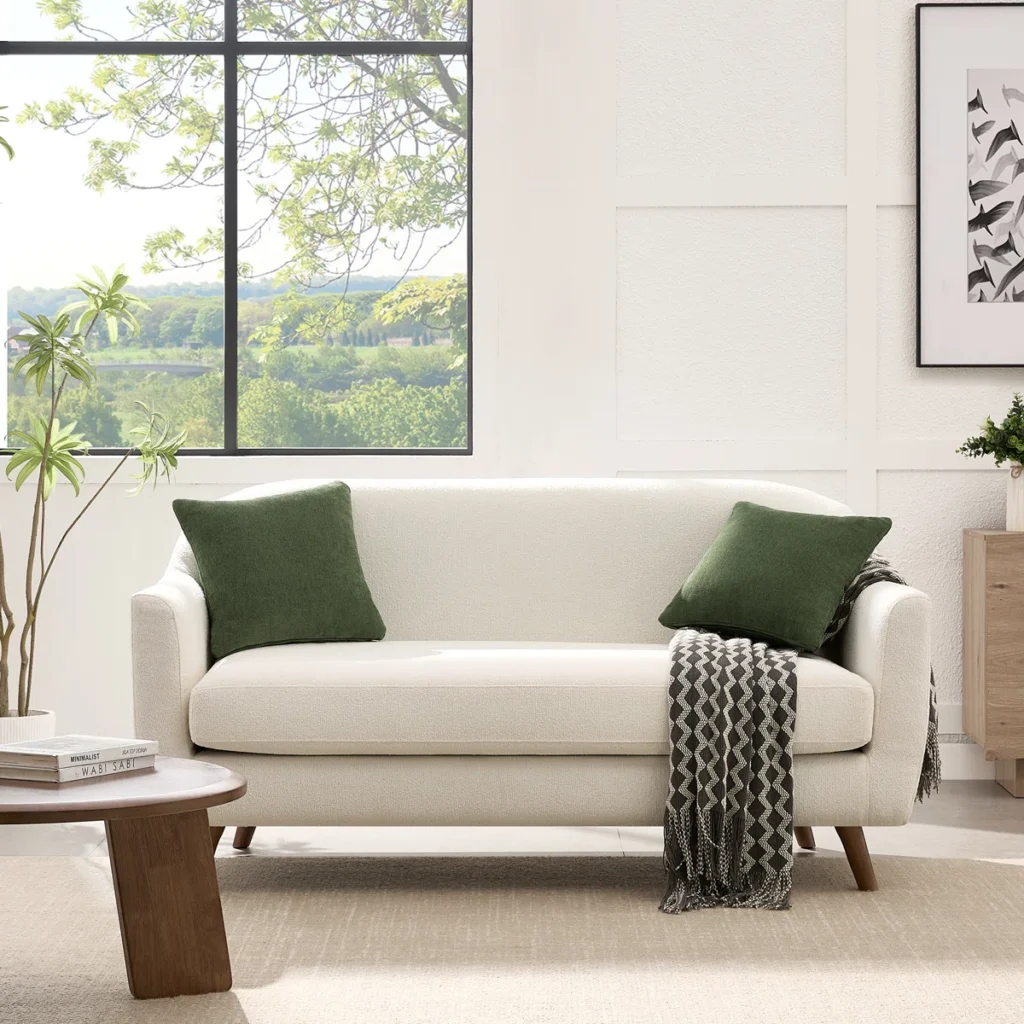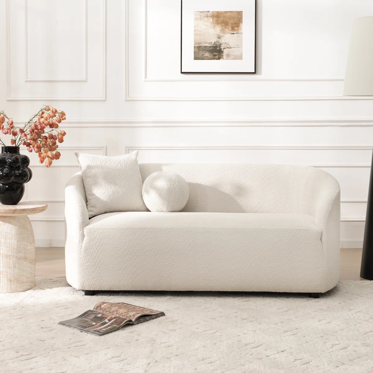 Modern Boucle Comfy Loveseat With 2 Pillows