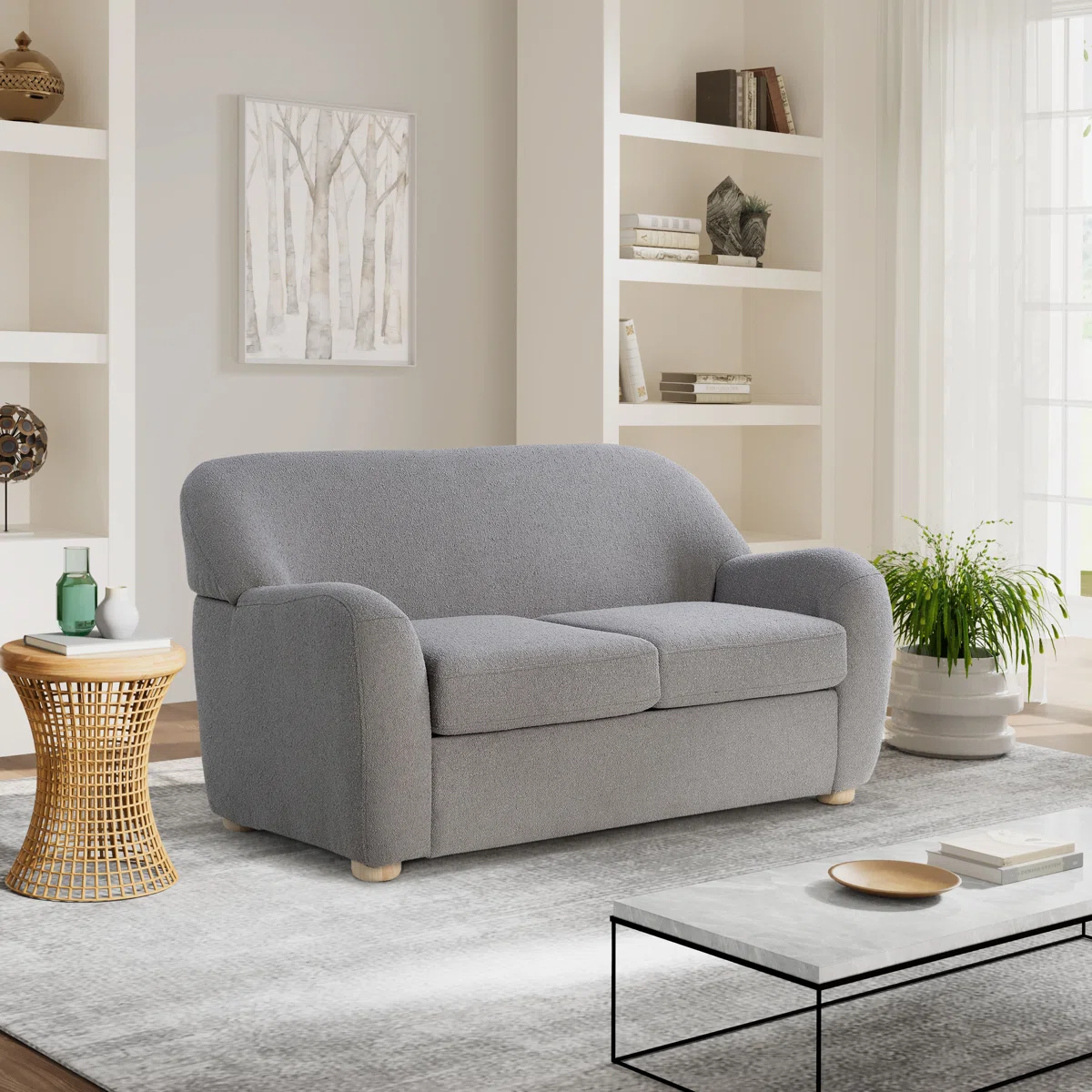 Boucle Upholstered Loveseat Couch Sofa
