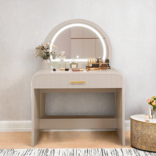 Makeup Vanity Table With Touch Screen Lighted Mirror, Dressing Table With A Drawer And Curved Edges