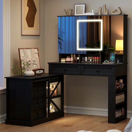 Zadia 48" Makeup Vanity with 36" Lighted Mirror, 4 Dressers & Charging Station & 3 Light Modes